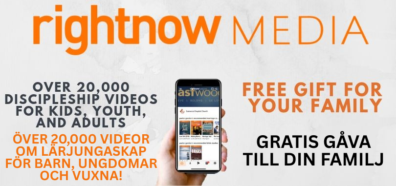 Vi är glada att kunna meddela att vår kyrka nu erbjuder obegränsad tillgång till RightNow Media, världens största streamingbibliotek med bibelstudievideor, med över 20 000 resurser från ledare som Francis Chan, Jennie Allen, J.D. Greear och Dr. Tony Evans. Dessa videor är perfekta för både gruppstudier och personlig andakt, och många av dem har gratis diskussionsguider. RightNow Media erbjuder också innehåll om ämnen som äktenskap, föräldraskap, ekonomi, mental hälsa och mycket mer, tillsammans med ett barnbibliotek med över 2 000 säkra videor. Appen är tillgänglig på alla större strömningsenheter, så du kan komma åt innehållet när som helst och var som helst. Klicka på denna inbjudningslänk för att komma igång med ditt gratis konto, och vi ber att RightNow Media ska välsigna dig och din familj! https://app.rightnowmedia.org/join/jakobstadsm